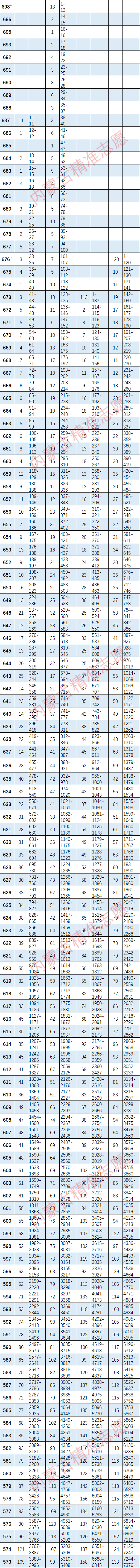 2021-2018年内蒙古高考一分一段表(理科)