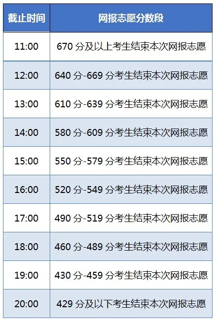 1. 7月15日8:00开始填报志愿;10:00后不允许删除志愿,但可以新填志愿;10:30后既不允许新填志愿也不允许删除志愿,只允许修改志愿。